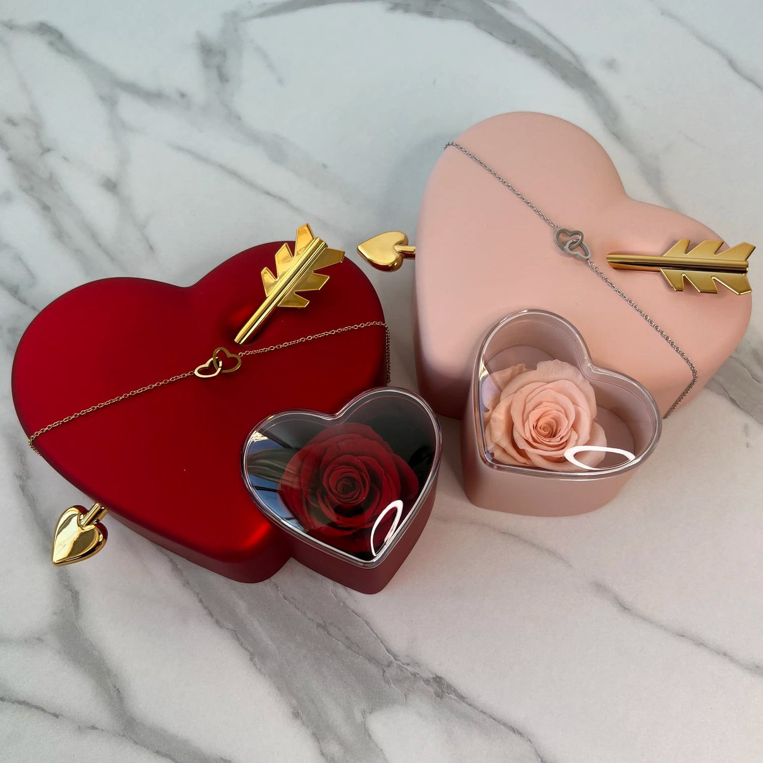 Regala il Cofanetto Rosa Eterna con Collana a 2 Cuori e lascia che il tuo amore brilli per sempre. Ordina subito e rendi la tua dichiarazione davvero indimenticabile!
